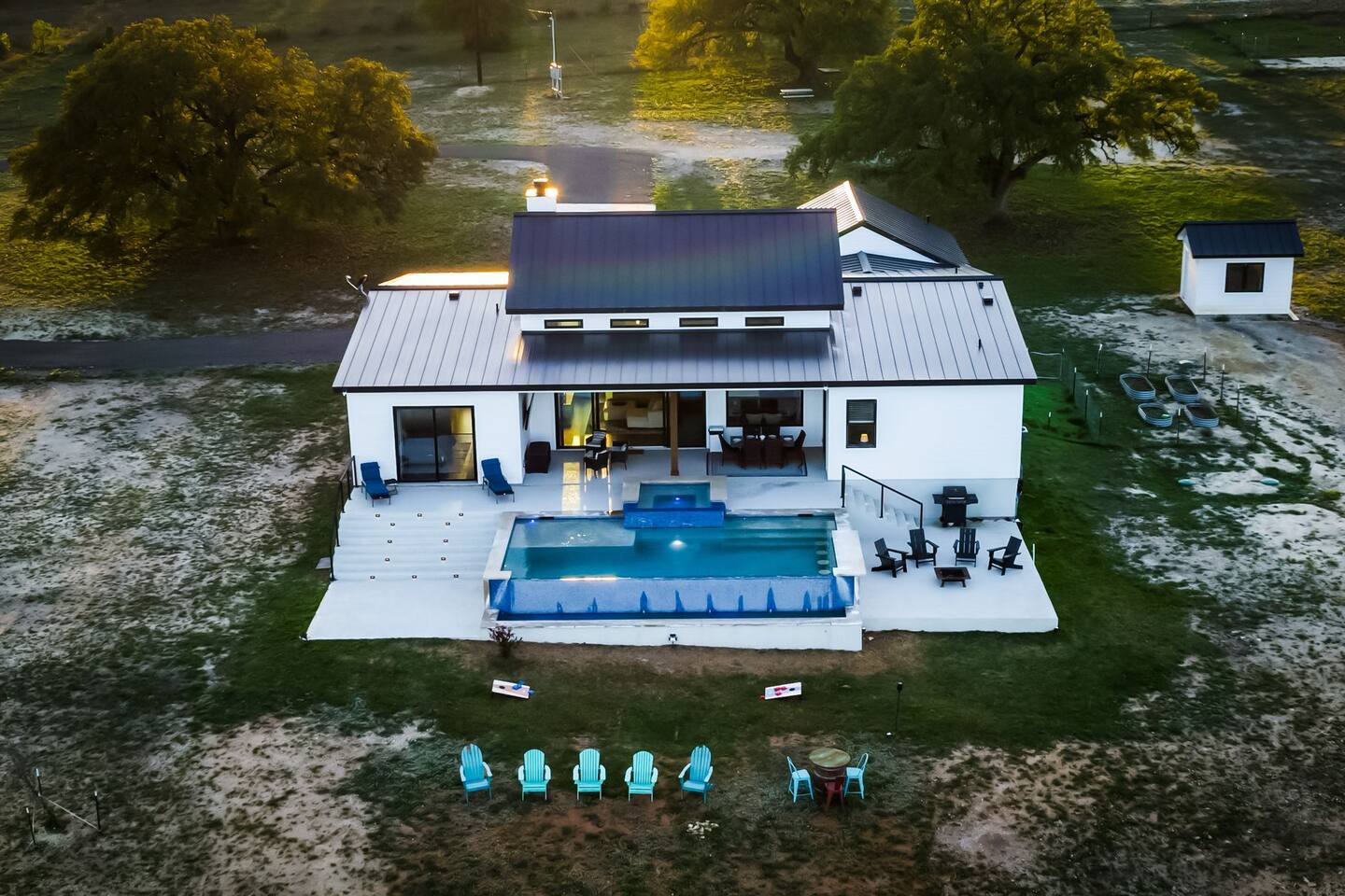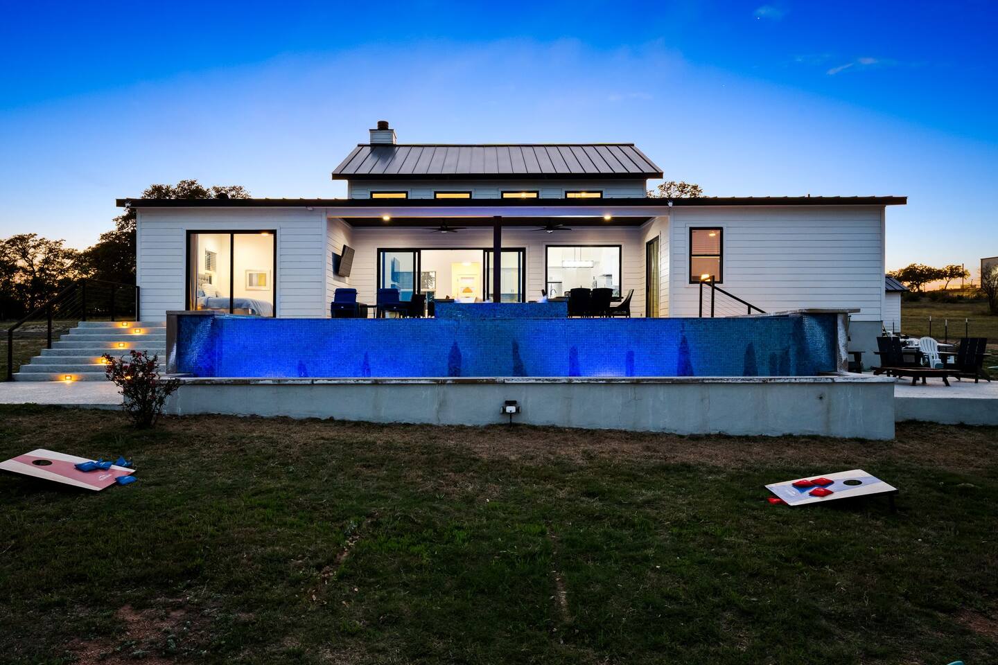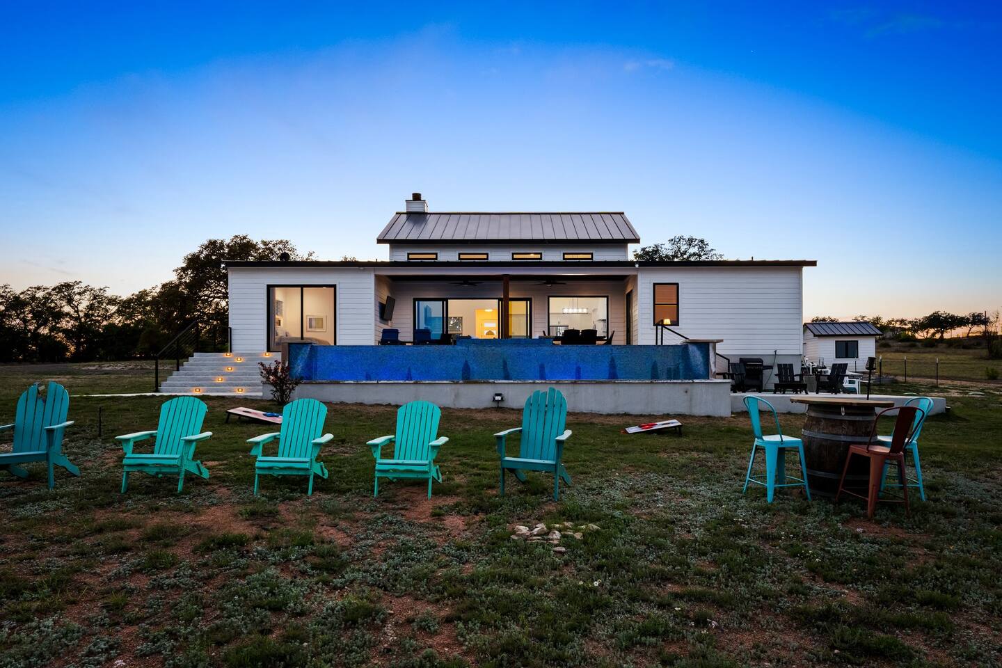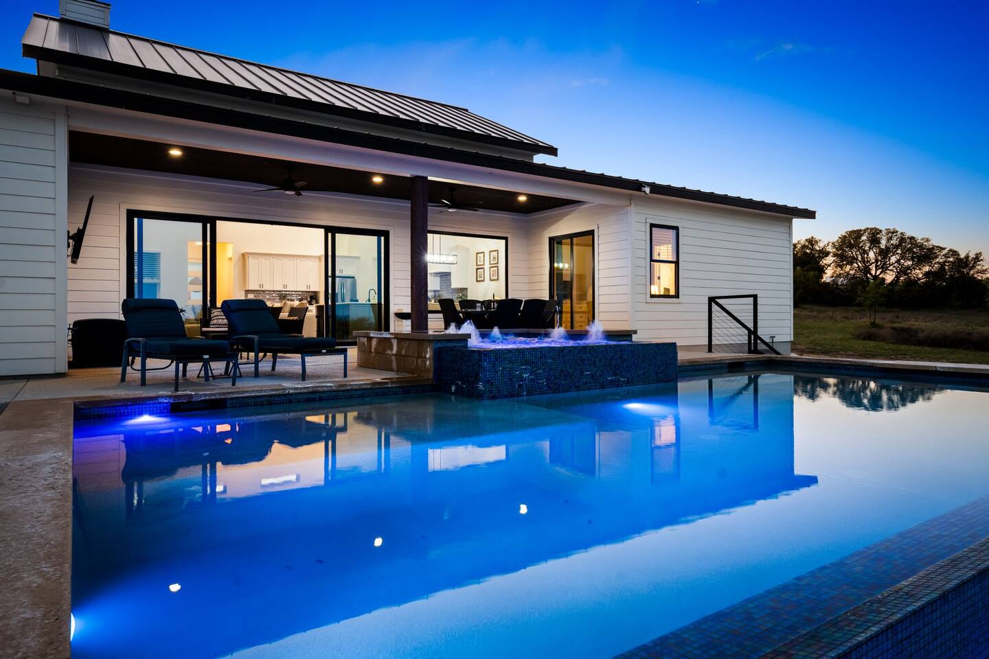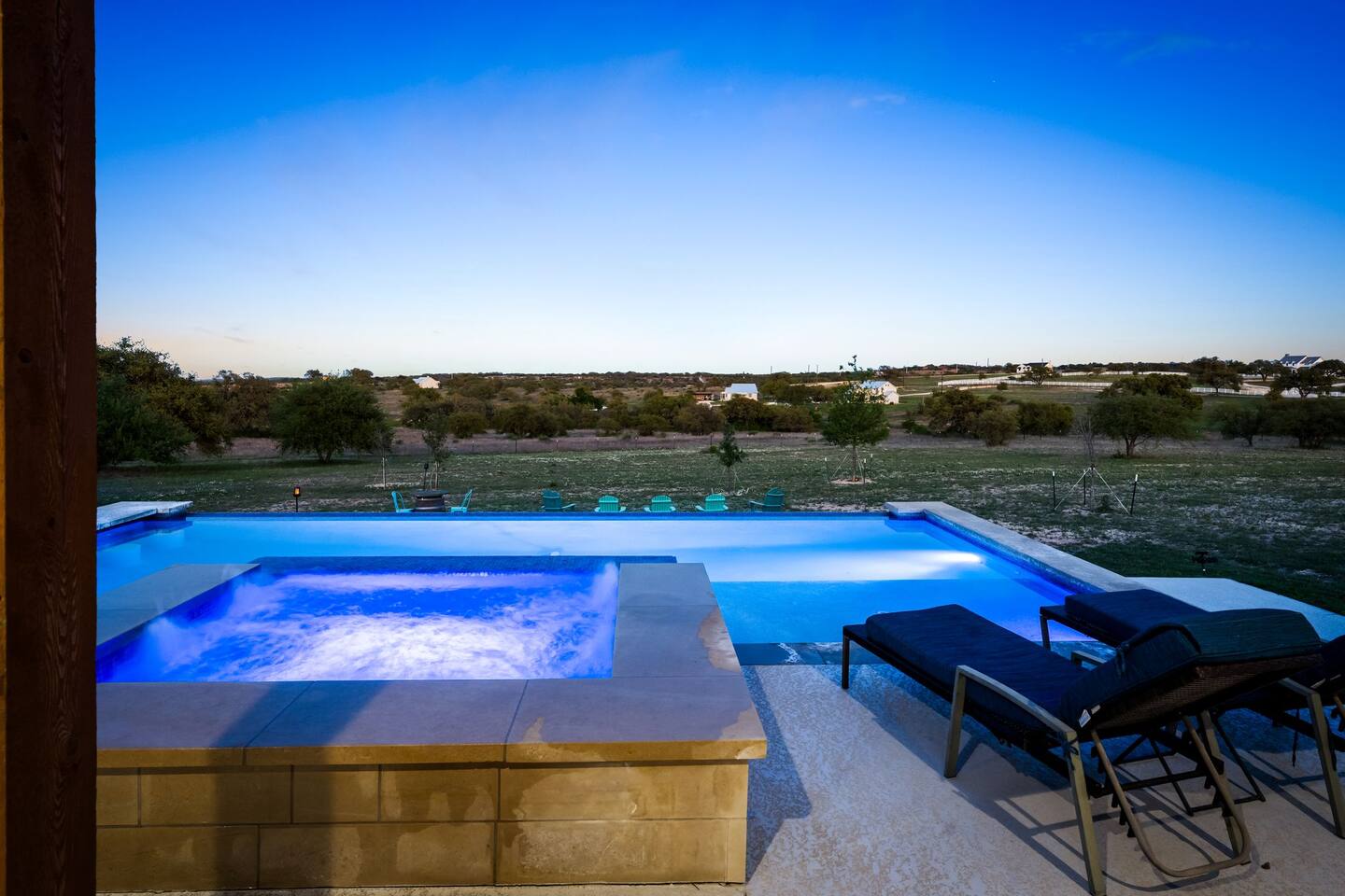 -The house is on septic and we ask guests not to flush any products (other than toilet paper) to help ensure an uninterrupted stay. - This is a working cattle ranch, and the cows will sometimes venture near the house. For the safety of the home and guests, there are 5 exterior cameras: 2 on back patio, 2 in the front of the house, and 1 on doorbell. -No parties or events. -No glass by the pool or hot tub. -No pets in the pool. - Hot tub is heated at no additional cost. POOL HEATING: - The pool may be heated for a fee of $125 per day for the duration of your stay (pool cannot be heated for only a portion of a stay). - Pool heating not available when the outdoor low temperature is forecasted to drop below 50 degrees at any time during your stay. - Pool heating not available in December, January, or February. -No smoking. Smoking on the property will result in a $500 fine. - The RV pads are available for use upon request. Should your total guest count be above 8, each extra guest will incur a fee of $50 per night. - The indoor fireplace is not available for use. -By booking, you accept responsibility for any damage/extra cleaning your dog causes during the stay. No dogs left home alone unless crated. Please clean up after your pet. $75 pet fee. -Hosts retain the right to require immediate removal of any dog if the animal is being disruptive to the neighborhood, causing damage, posing a risk to people or other animals, or for other major violations. -Undisclosed pets will be an automatic $300 charge. -Be aware that the Texas Hill Country graces this property with critters of all kinds.