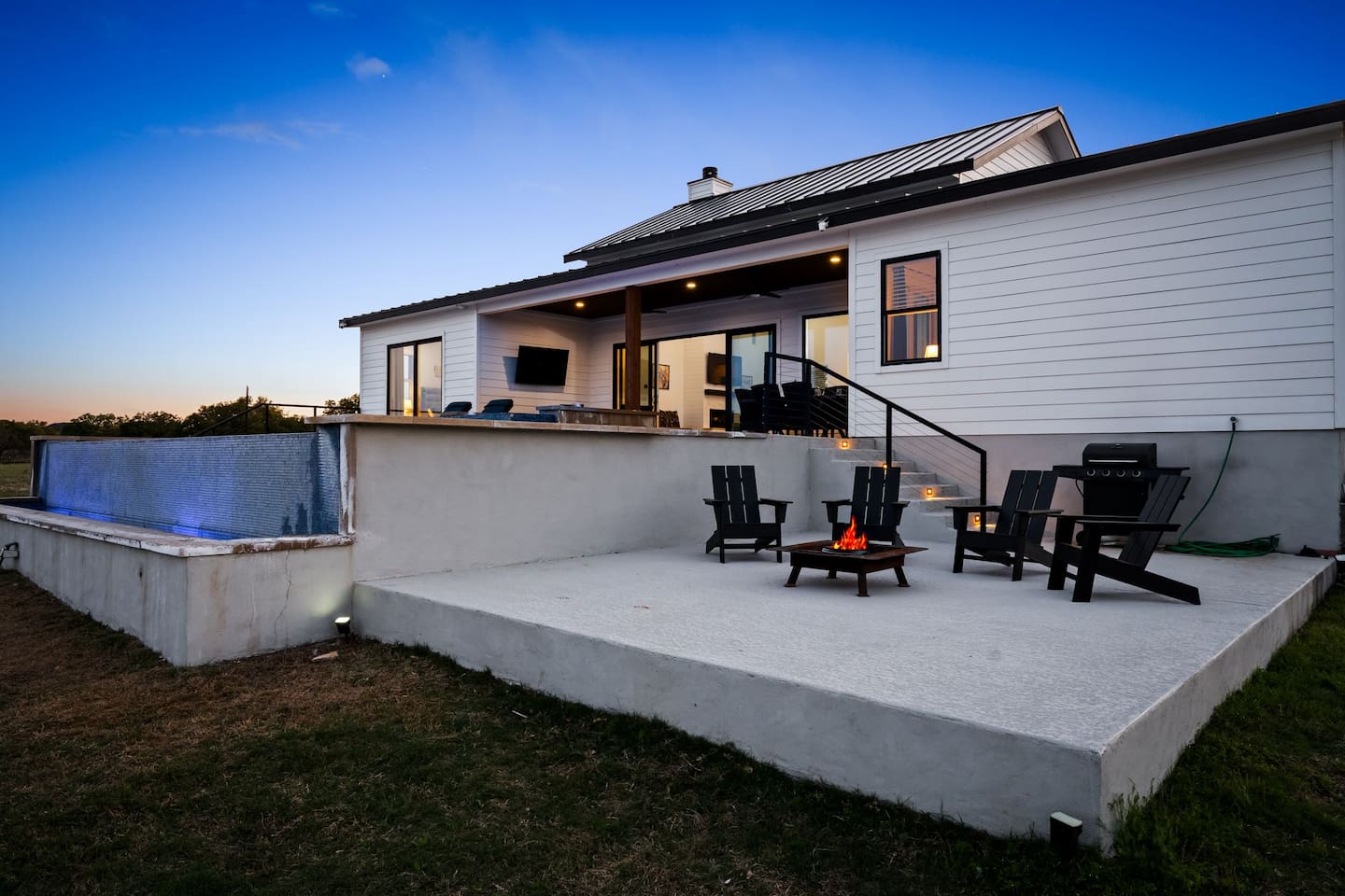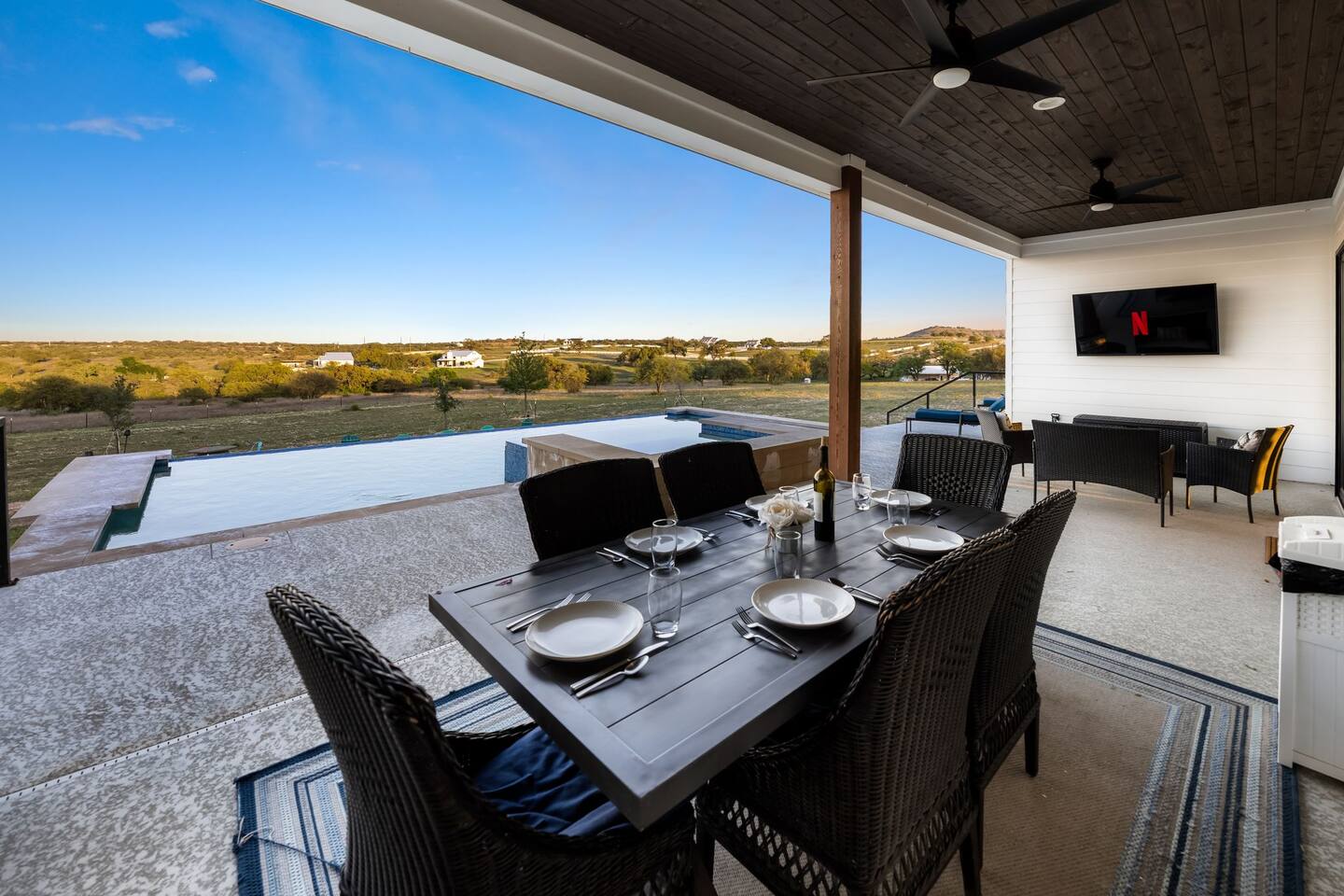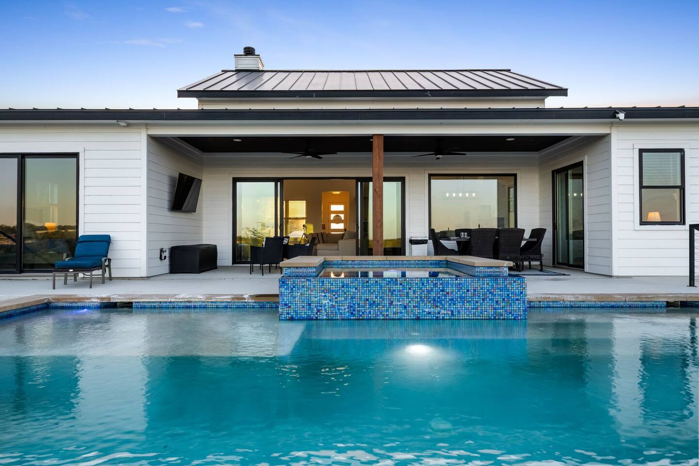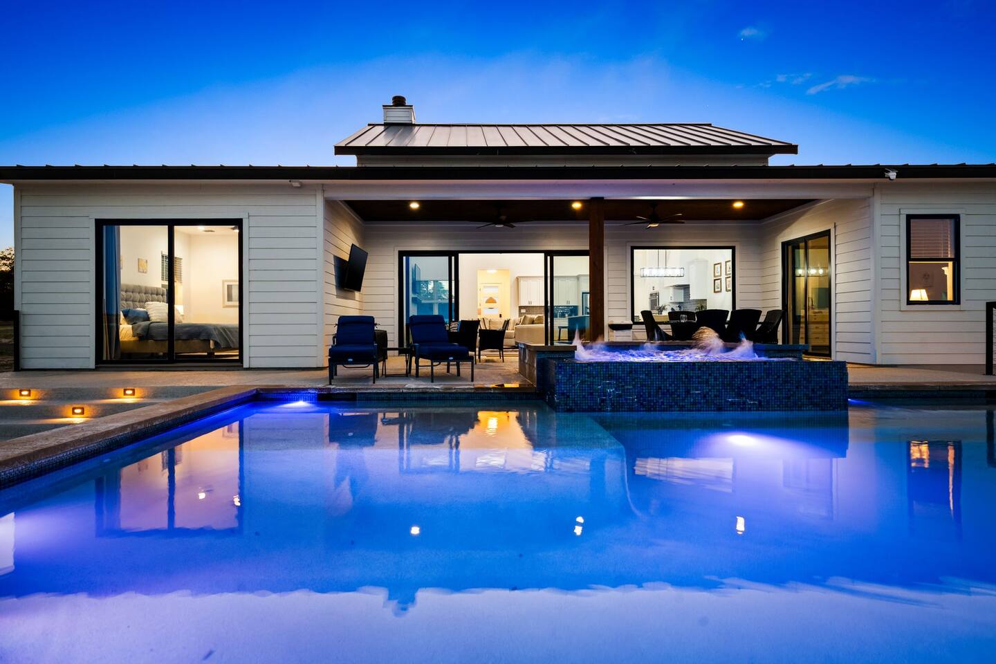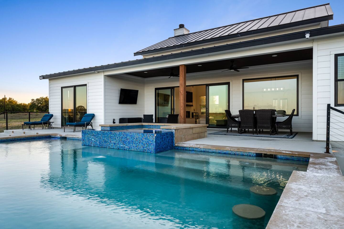 -The house is on septic and we ask guests not to flush any products (other than toilet paper) to help ensure an uninterrupted stay. - This is a working cattle ranch, and the cows will sometimes venture near the house. For the safety of the home and guests, there are 5 exterior cameras: 2 on back patio, 2 in the front of the house, and 1 on doorbell. -No parties or events. -No glass by the pool or hot tub. -No pets in the pool. - Hot tub is heated at no additional cost. POOL HEATING: - The pool may be heated for a fee of $125 per day for the duration of your stay (pool cannot be heated for only a portion of a stay). - Pool heating not available when the outdoor low temperature is forecasted to drop below 50 degrees at any time during your stay. - Pool heating not available in December, January, or February. -No smoking. Smoking on the property will result in a $500 fine. - The RV pads are available for use upon request. Should your total guest count be above 8, each extra guest will incur a fee of $50 per night. - The indoor fireplace is not available for use. -By booking, you accept responsibility for any damage/extra cleaning your dog causes during the stay. No dogs left home alone unless crated. Please clean up after your pet. $75 pet fee. -Hosts retain the right to require immediate removal of any dog if the animal is being disruptive to the neighborhood, causing damage, posing a risk to people or other animals, or for other major violations. -Undisclosed pets will be an automatic $300 charge. -Be aware that the Texas Hill Country graces this property with critters of all kinds.