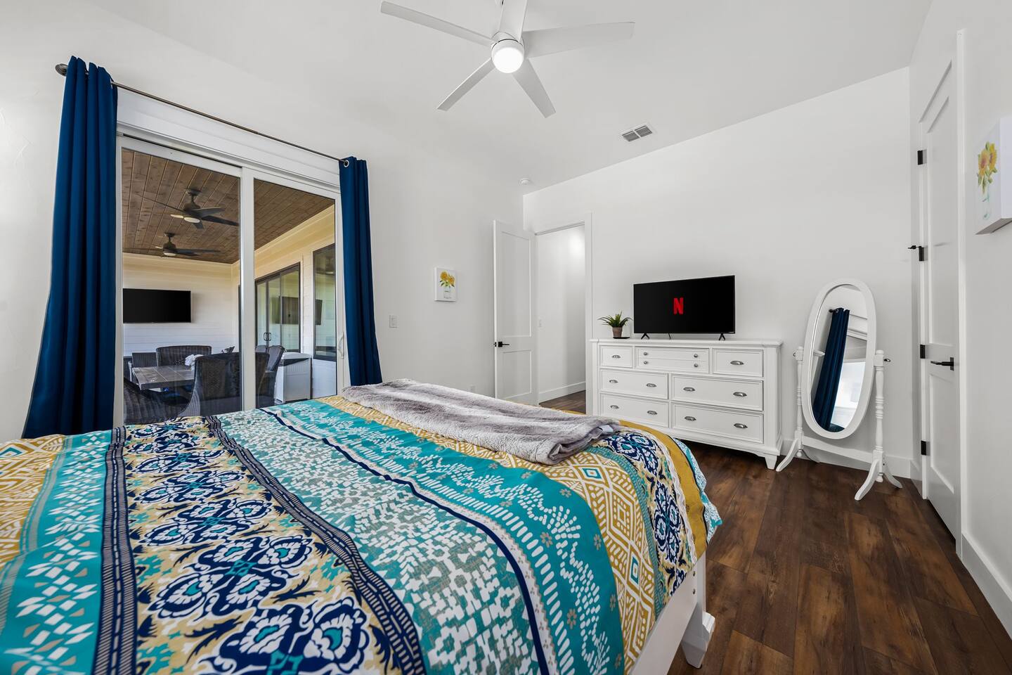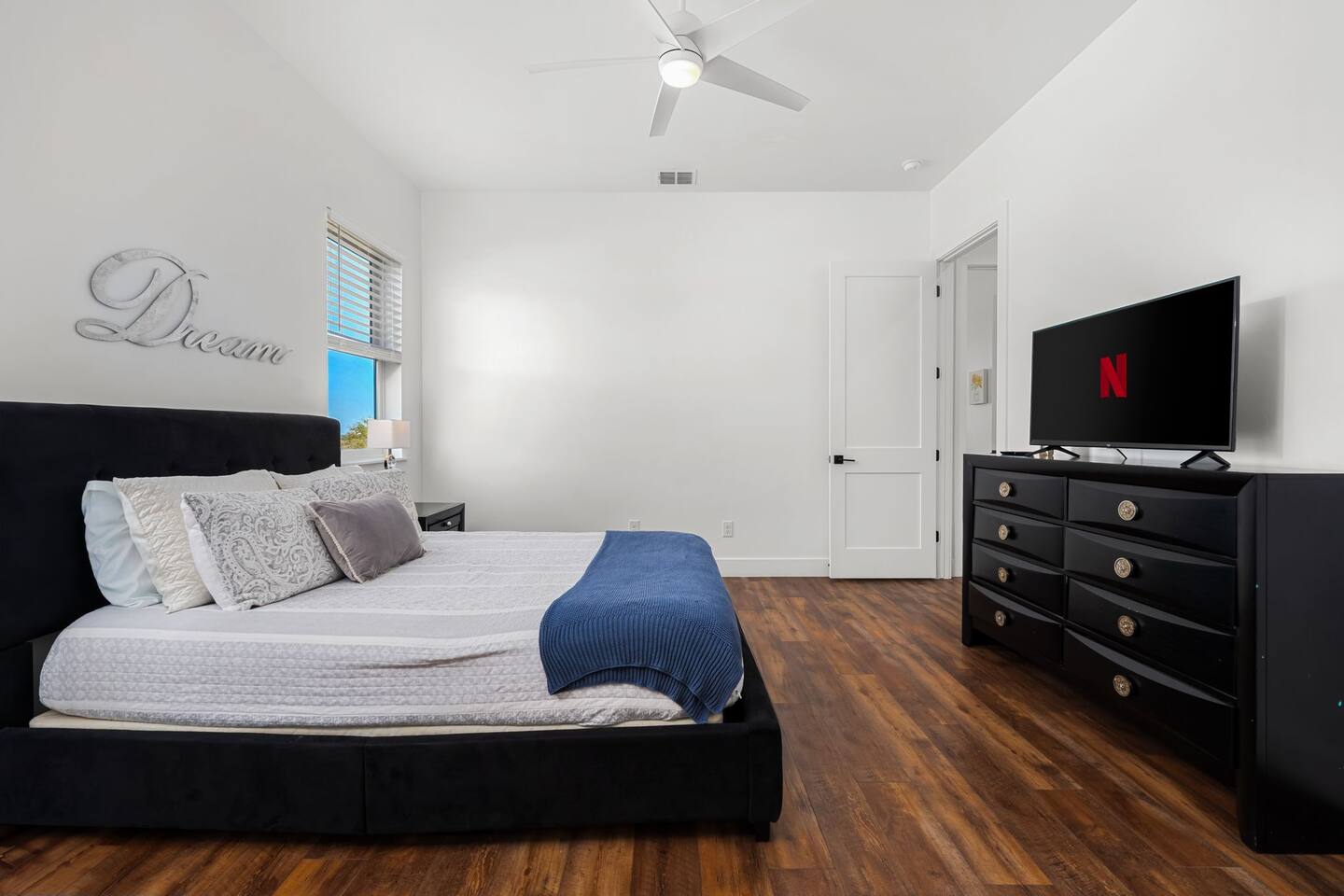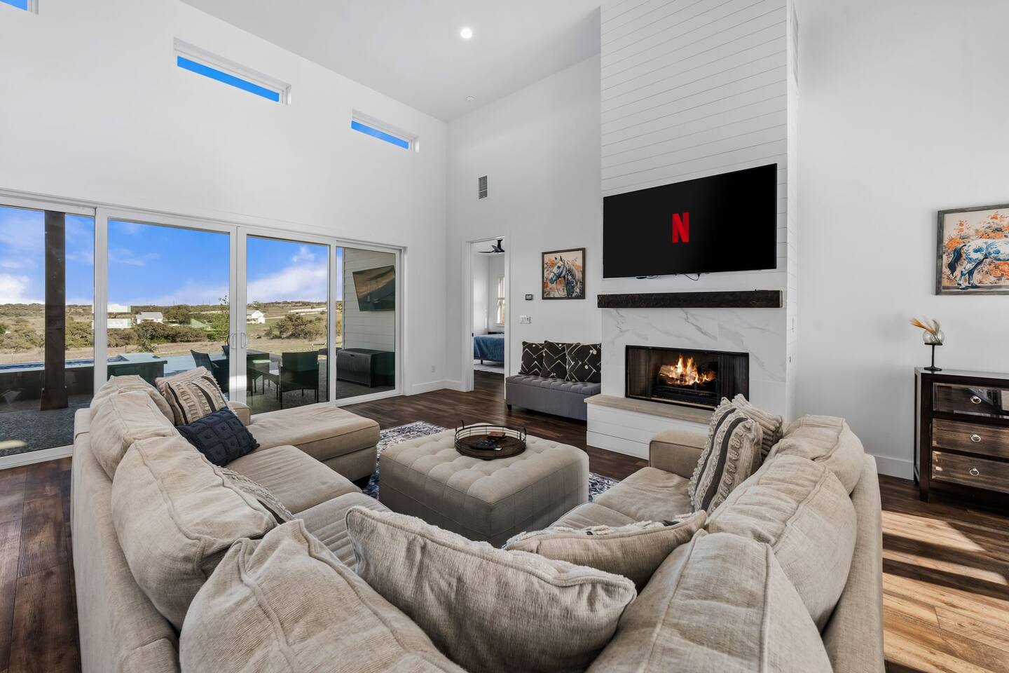 Whether you're here to relax by the pool, explore the town, or enjoy family time together, this home offers a perfect mix of comfort, style, and space. Book your stay in Johnson City with us today and experience the best of both worlds—seclusion with convenience! KEY FEATURES: ☀ Sleeps 8; 4 bedrooms (1 king, 2 queen, 2 twin beds) ☀ 3.5 Bathrooms; 3 ensuite bathrooms plus a half bath in hallway ☀ Modern and well-equipped kitchen with coffee bar ☀ Outdoor covered patio with dining table for 6 and smart TV, ample space to enjoy good meals and good company ☀ Private pool and hot tub for your enjoyment, perfect for a refreshing swim or stargazing under the stunning night sky ☀ Fire pit and propane grill to use for a cozy evening in ☀ WiFi and 5 TVs throughout the home equipped with Roku streaming capabilities ☀ Dog-friendly ☀ Enjoy serene views and fresh air from the front porch swing and rocking chairs, a perfect spot for morning coffee or evening relaxation ☀ Short drive to many wonderful restaurants, tasting rooms, boutiques, and antique stores that Johnson City has to offer ☀ PLUS: 3 RV pads with full hookups! (bring your own RVs) ☆☆ BEDROOMS ☆☆ This cozy home on 10 acres accommodates 8 guests in 4 bedrooms. The primary bedroom has a king bed and a sliding glass door that exits onto the back patio with a view. Includes a beautiful spacious ensuite bathroom. The second and third bedrooms host queen beds. The fourth bedroom hosts a single twin bed with a twin trundle. ☆☆ BATHROOMS ☆☆ There are three full ensuite bathrooms in this home, each of them stocked with shampoo, conditioner, and body wash. There is also a half bathroom in the hallway. ☆☆ KITCHEN & LIVING ROOMS ☆☆ The bright and airy kitchen is fully equipped with all the appliances, utensils and cookware you need to feel at home. This thoughtfully-designed home provides a pantry you may use to store food. There is a beautiful dining table that seats 7 and a kitchen island that seats 4. There is a large living room space with a Roku TV entertainment system, allowing full access to your favorite streaming services. ☆☆ OUTSIDE SPACE ☆☆ HillRod Ranch offers an exceptional outdoor space, complete with outdoor patio, TV, pool, hot tub, fire pit, grill, and corn hole set. Gather on the back patio, complete with a propane grill, comfortable seating around a fire pit and a table that seats 6, great for outdoor lunches and activities. ♨️ POOL HEATING ♨️ - The pool may be heated for a fee of $125 per day for the duration of your stay (pool cannot be heated for only a portion of a stay). - Pool heating not available when the outdoor low temperature is forecasted to drop below 50 degrees at any time during your stay. - Pool heating not available in December, January, or February. - The hot tub is always available at no added cost. -When pool heating is on, the pool and hot tub will heat to the same temperature. The hot tub cannot heat more than the pool when pool heating is on. ★☆ Book Today & Let Us Take Care Of You In Johnson City! ☆★